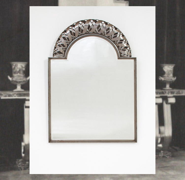 A wrought-iron mirror with volute, circa 1940;