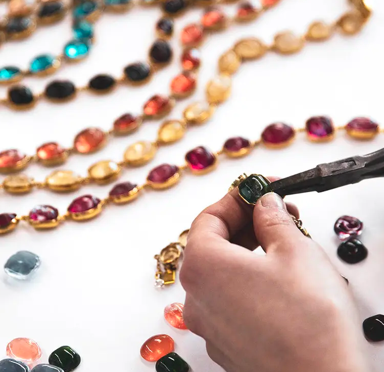 In 1880, in his “History of Luxury”, Henri Baudrillart dated the origins of “faux jewelry” to the reign of Louis XIV during which the court was emulating the king, but since they were unable to afford pieces made from real stones they resorted to simulated pieces in lieu of flashing jewels. In the 20th century, under the influence of Chanel, costume jewelry was no longer a way to mask or simulate but on the contrary to affirm the true nature of the false, to play deliberately with the ambiguity.