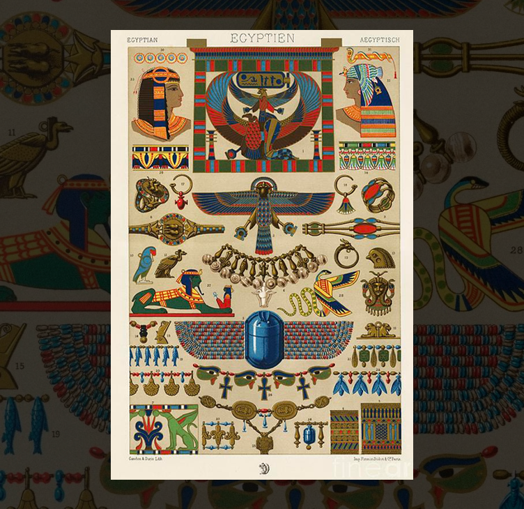 Among the main sources of inspiration, not only for Cartier but for the whole Egyptomania movement, in Europe was the Grammar of Ornaments by Owen Jones published in 1856, illustrating in a very detailed and colorful manner the various ornaments of Egypt.